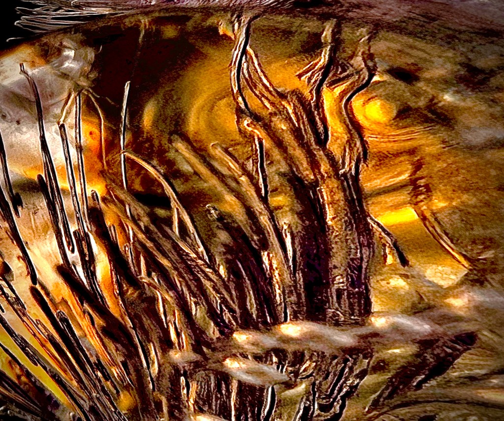 Below them, I’m not sure if you would call it ground level or lower than that, whispy figures seem to glide or hover below the figures. Each was separate but together, connected in the same way pussy willows appear. They acted the same way a pet dog would, staying close to their owner, loyal to the bitter end.