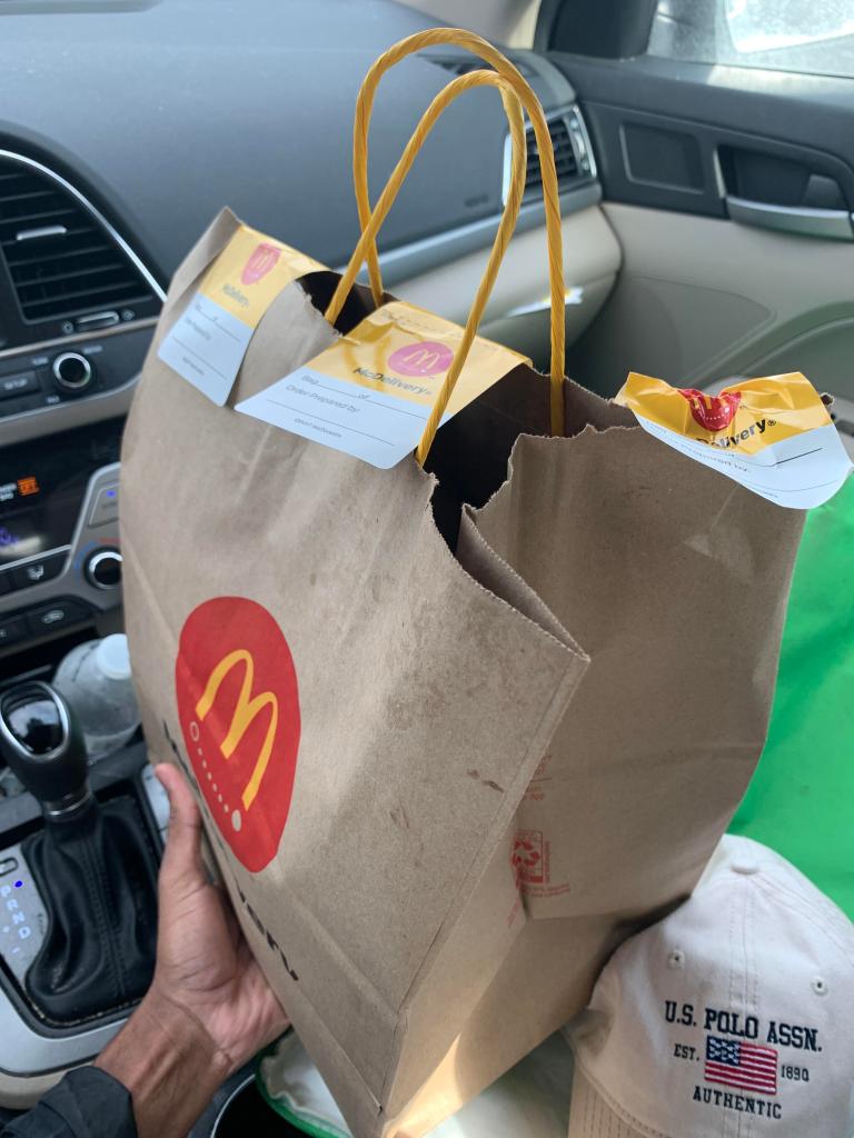 That’s when our fun ended. Mom opened the front door, her left hand holding a couple of McDonald’s paper bags. Balanced in the middle of her right hand was a cardboard tray holding five drinks, the fifth shoved between the others. “What’s going on?” she asked. Joe grabbed his box and threw it down the stairs, forgetting to get on it. “Aw, man!” he yelled. The box slid down all three flights, resting at Mom’s feet.