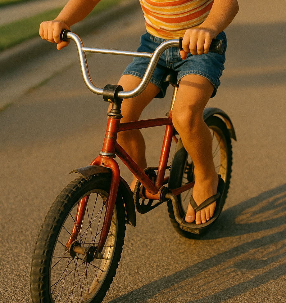 James’s flip-flop caught the sidewalk. His bike stopped.